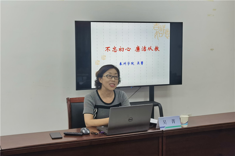 吴菁围绕“不忘教育初心、牢记教育使命、守好纪律规矩底线”三个方面,进行了精彩的论述。“不忘教育初心”,就是不忘立德树人初心,牢记为党育人、为国育才的使命,要时刻牢记习近平总书记“四个引路人”的教导,将学生的价值观塑造、知识和能力培养有机融合,培养德智体美劳全面发展的社会主义建设者和接班人。“牢记教育使命”,就是要按照习近平总书记的要求,做“四有好教师”,要积极探索新时代教育教学方法,将课程思政融入育人全过程,不断提升教书育人本领。关于守好“纪律规律底线”,吴菁解读了《事业单位工作人员处分暂行规定》《LETOU国际米兰官网教师职业行为负面清单及师德失范行为处理办法》等,通过违法违纪典型案例的讲解,要求大家保持积极进取的精神状态,常怀敬畏和戒惧,守住做人底线,远离违纪高压线,做到廉洁从教。
