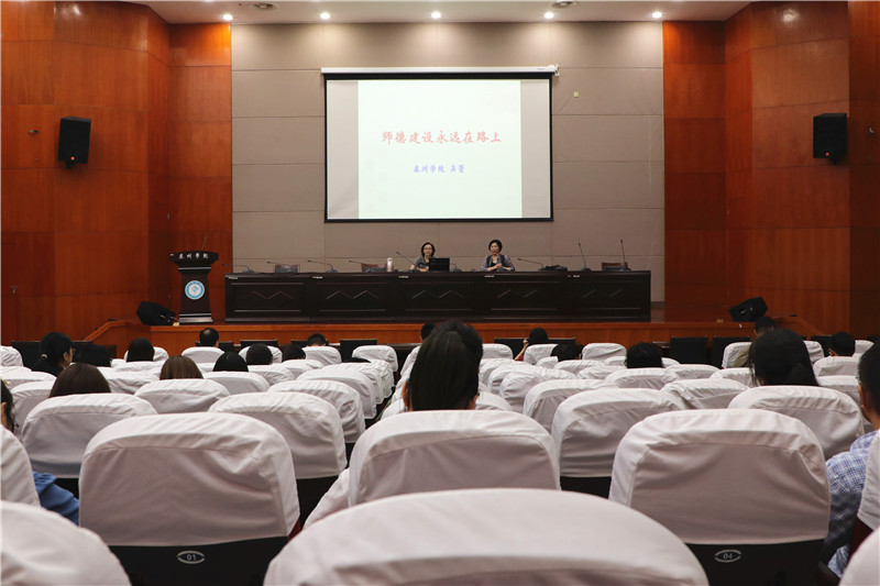 9月13日晚,校党委常委、纪委书记吴菁在行政楼1216会议室,为全校2020年新入职教师作“师德建设永远在路上”的专题讲座。