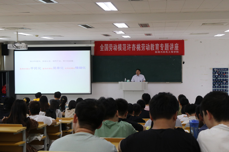 为全面推进大学生劳动价值观教育,9月23日下午,船舶与机电工程学院在A2307教室开展“全国劳动模范进校园”劳动教育专题讲座。米兰官网兼职教授、劳育导师、全国劳动模范许杏桃面向学院师生200余人开讲,讲座由船机学院院长赵振江主持。