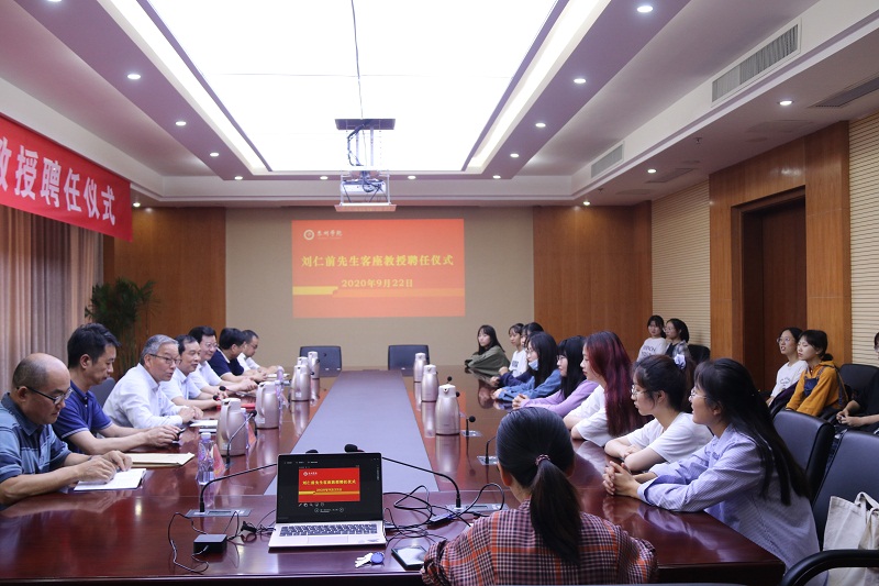 9月22日下午,人文学院在校行政楼1505会议室举行仪式,聘任泰州市文联主席、一级作家、中国作家协会会员刘仁前先生为学院客座教授。校党委常委、副校长周建超,泰州文联编辑部主任严尔碧,图书馆副馆长朱建华,人文学院相关负责人及师生代表参加活动。活动由人文学院党总支书记王春进主持。