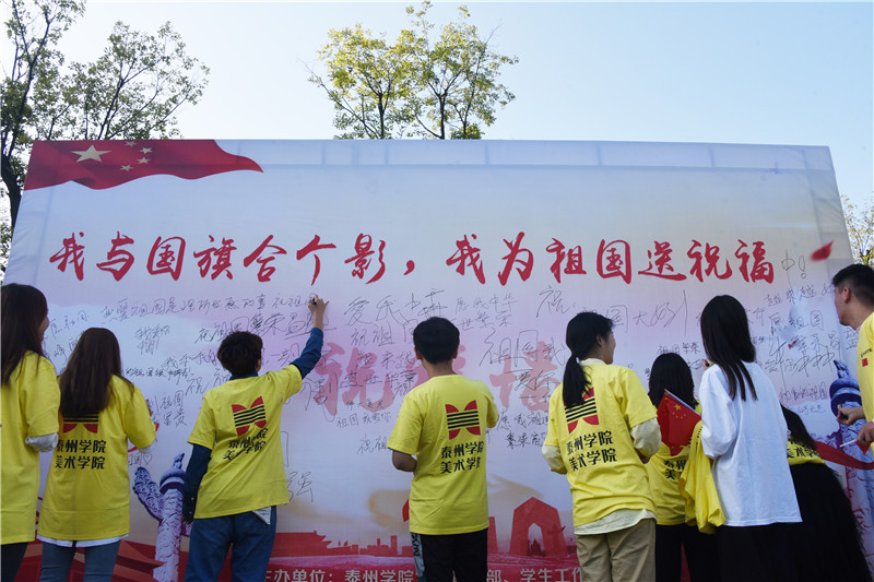 为庆祝中华人民共和国成立71周年,进一步激发全校广大师生员工的爱国热情和迎评攻坚的昂扬斗志,米兰官网于9月30日上午在胡瑗广场举行“我与国旗合个影,我为祖国送祝福”国庆升旗仪式。校党委书记赵茂程,党委副书记邓友祥,校党委常委、副校长鲁学军,党委宣传部、学生工作部、相关学院负责人及美术学院全体教师和部分学生参加升旗仪式。