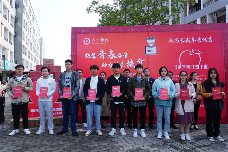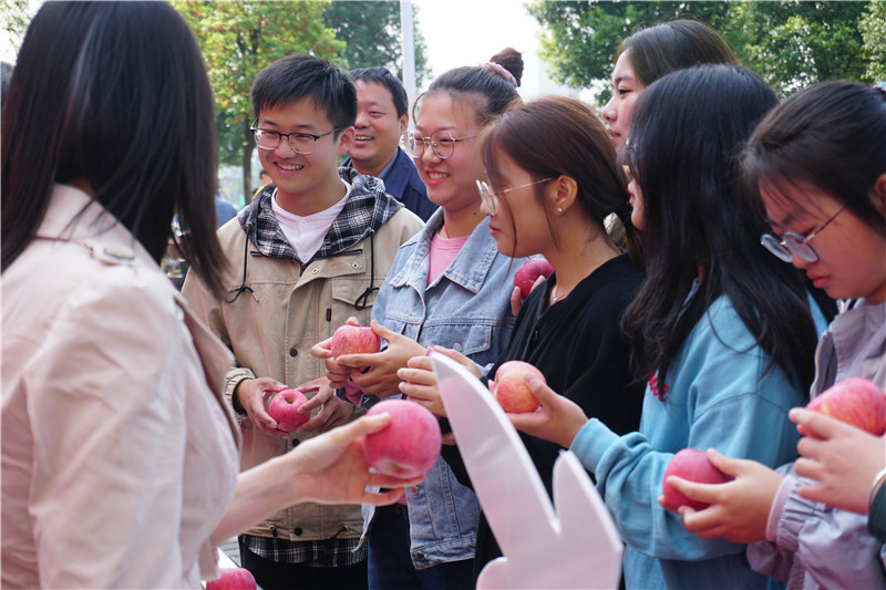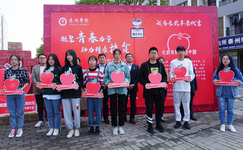 海陵区青年商会听闻本次活动后及时加入到扶贫接力工作中来,他们采用“双扶贫”的形式献爱心,主动认购100箱长武苹果并第一时间转赠予船机学院的家庭经济困难学生。