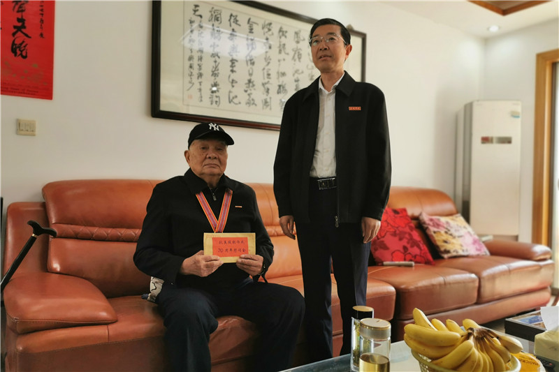 “雄赳赳,气昂昂,跨过鸭绿江,保和平,为祖国,就是保家乡。”70年前,一群优秀的中华儿女,不畏强敌,开赴朝鲜抗美援朝,历经2年零9个月艰苦卓绝的浴血奋战,赢得了抗美援朝伟大胜利。10月24日上午,校党委副书记邓友祥一行来到家住仪征的抗美援朝老战士、原泰兴师范总务处副主任罗立极家中,代表校党委校行政亲切看望抗美援朝老战士,向罗老转达全校师生的问候和敬意。