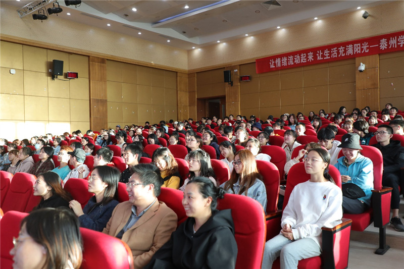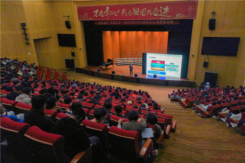 10月23日、24日全天,学校为所有2020级新生组织心理健康讲座。南京中医药大学泰州分校王松云老师、南京理工大学泰州科技学院时昕老师分别讲授。王松云老师以《如何度过一个美好的大学生活》为主题,就如何进行压力缓解,为新生现场演示了减压方法;时昕老师以《学会调适,快乐生活——2020级大学新生的心理调适》主题,比对了大学入校前和大学入校后的学习、生活、人际交往等方面的不同,解释了新生入校之初适应不良的原因,指出了大学阶段可能会引起心理问题的现实情况。