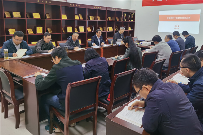 船机学院党总支书记崔昌玺主持学习会,并作《疫情影响下的世界经济形势》专题讲座。崔昌玺认为,疫情影响的严重性可谓前所未有,对全球经济已造成了巨大冲击。结合当前世界经济形势的主要特点,他强调,要全面、辩证、长远看待经济形势,要坚定发展信心、坚持扩大对外开放、坚定不移走创新发展道路。