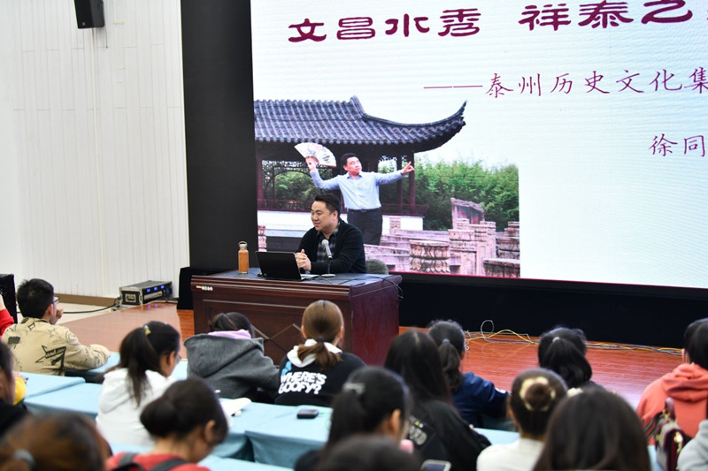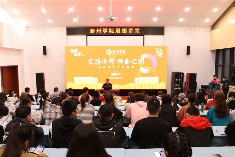 10月28日下午,米兰官网“阳光讲堂”邀请知名作家、泰州地方文化学者徐同华为2020级新生作主题为“文昌水秀·祥泰之州”的泰州历史文化专题讲座。