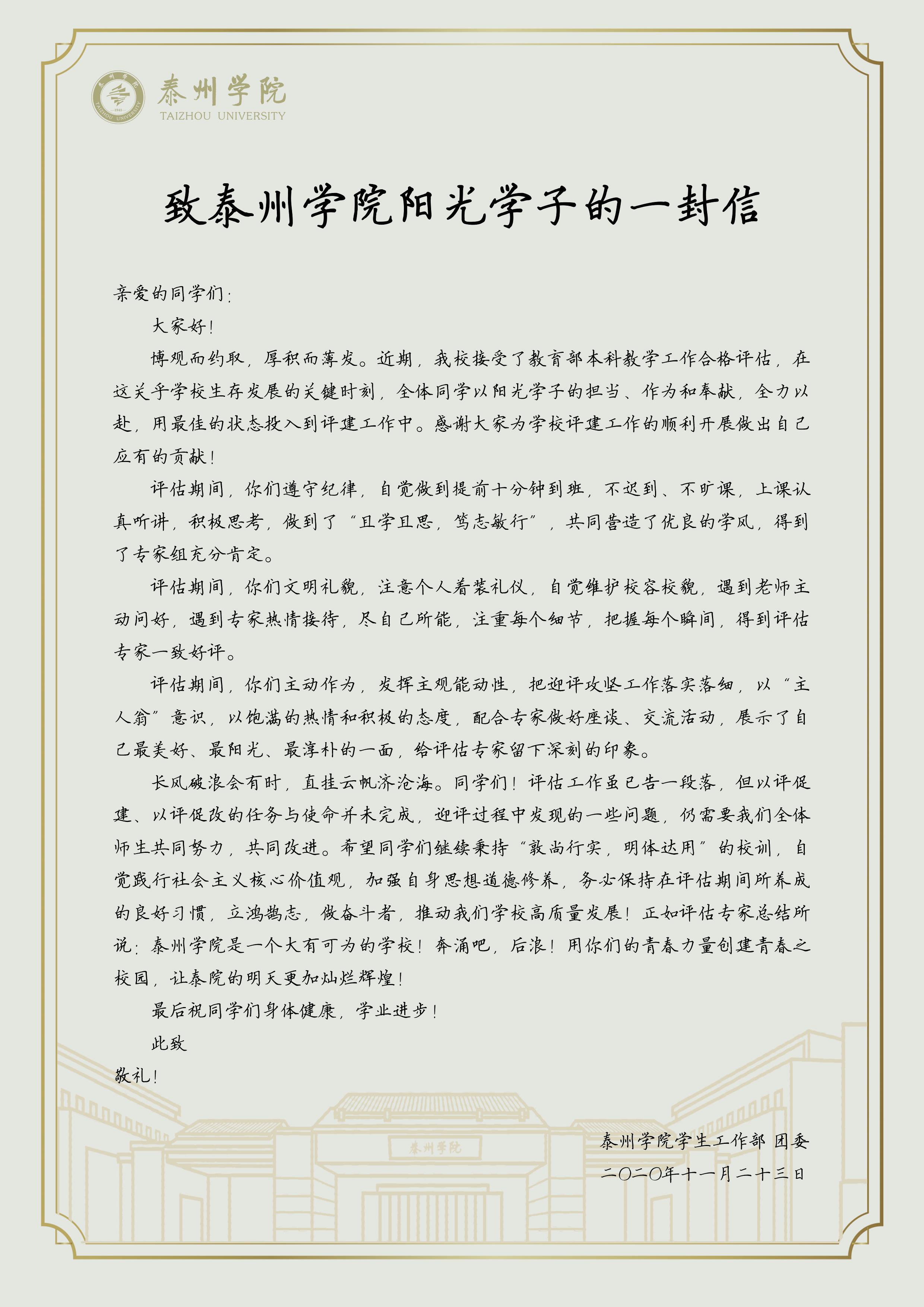 致LETOU国际米兰官网阳光学子的一封信