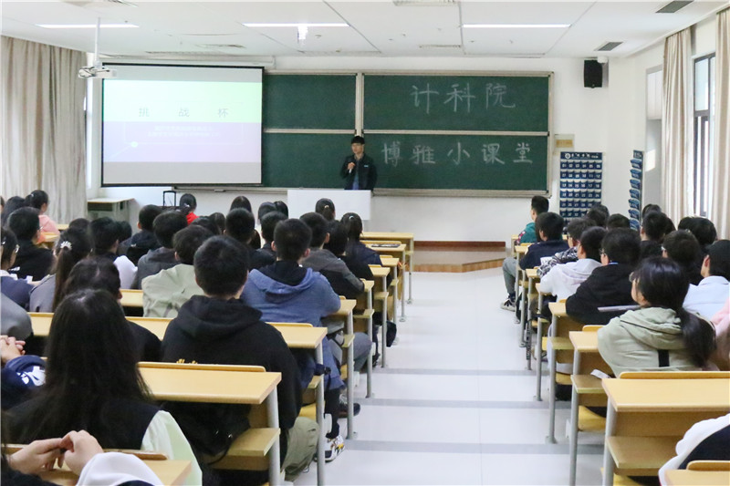 11月17日下午,计算机科学与技术学院在教学楼1303开展了以“挑战学科竞赛,争做博雅学子”为主题的博雅小课堂公开展示活动。计科院执行院长崔宝同,党总支副书记、副院长陈茂国以及2020级学生代表参加本次活动。
