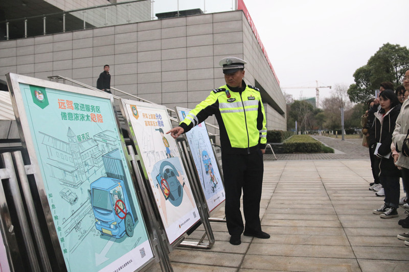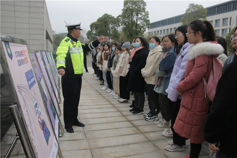 活动开始,王宇警官对宣传展板的交通安全警示进行了详细讲解,突出关系生命 “大安全”的“小细节”,告知同学们在校园出行、夜间出行、驾车出行时如何正确规避风险。此外,他现场和同学互动交流,并结合具体案例生动形象地展现“交通处处需谨慎”,再次向同学强调交通安全的重要性。最后,王志东警官强调了出行安全关系到每个公民的日常生活,并且用“衣食住行寻常事,最感负重前行人”,告诉大家出行的重要性。