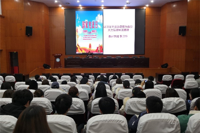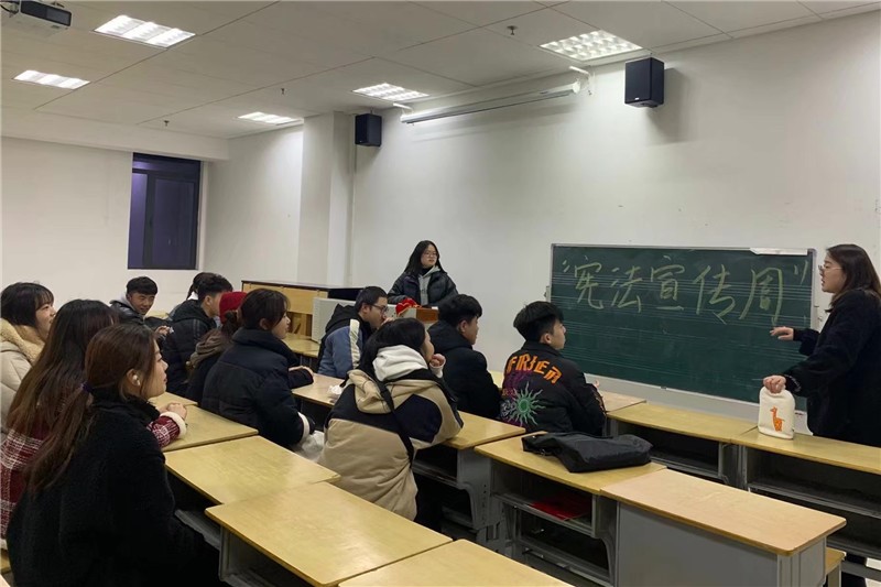 人文学院举办了“以习近平法治思想为指引,大力弘扬宪法精神”为主题的讲座。讲座中,专业教师季卫华以党的十九大报告为基础,就宪法日的由来、宪法的修订、具体条例的实施等进行讲解,指导学生了解宪法相关知识,让学生充分意识到宪法的神圣,自觉遵守宪法相关条例。同时,他循循善诱,引导大家思考作为时代新青年自己应尽的义务。