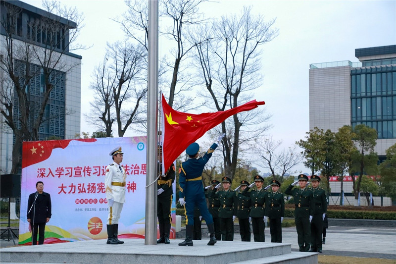 12月4日清晨,经济与管理学院300余名师生代表齐聚胡瑗广场,举行主题为“深入学习宣传习近平法治思想 大力弘扬宪法精神”国家宪法日升旗仪式。伴随着激昂的《义勇军进行曲》,五星红旗在师生注目中冉冉升起,承载着新的希望,激励着大家奋发进取的斗志。