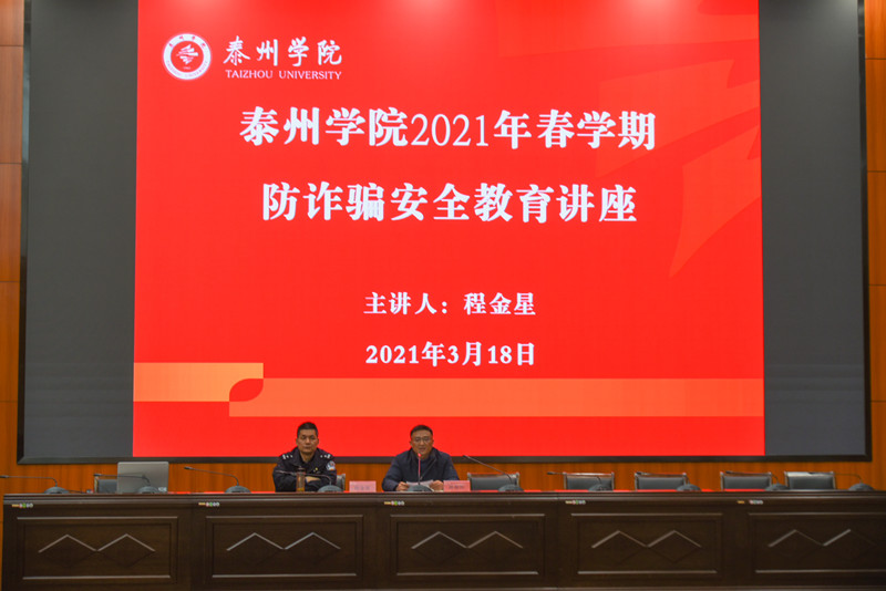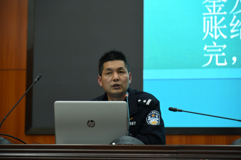 3月18日晚上,米兰官网邀请城南派出所警官程金星在行政楼D1216开展防诈骗安全教育讲座。讲座由保卫处处长陈根怀主持,2019级和2020级各班班长参加此次讲座。