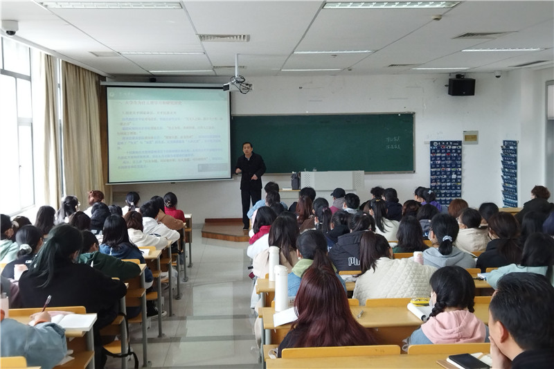 周建超从解读“纲”和“要”两个字入手,深入浅出地向同学们介绍了本课程的学习内容、学习目标及课程的性质和功能。在整个授课过程中,紧紧围绕“大学生为什么要学习中国近现代史”这一主题,从“为什么要学习和研究历史”、“准确把握中国近现代史的主题和主线”、“怎样才能学好中国近现代史”三个方面详细展开讲述。