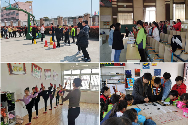 米兰官网教师直接参与到对口学校兴化市周庄中心小学、陈堡中心小学的大合唱、舞蹈、书法、中国画、乒乓球、篮球等学生社团活动,与指导教师交流帮扶计划、指导社团成员练习,活动效果良好。