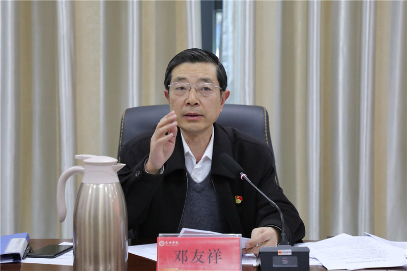 会上,党委副书记邓友祥总结了前一阶段学校党史学习教育工作进展情况、成效和亮点,并从校院两级理论学习中心组、二级党组织、党支部、党员个人等四个层面进一步明确了党史学习教育重点任务。邓友祥还结合学校近期出台的《在党史学习教育中开展“我为群众办实事”实践活动的实施方案》布置了下一阶段工作。