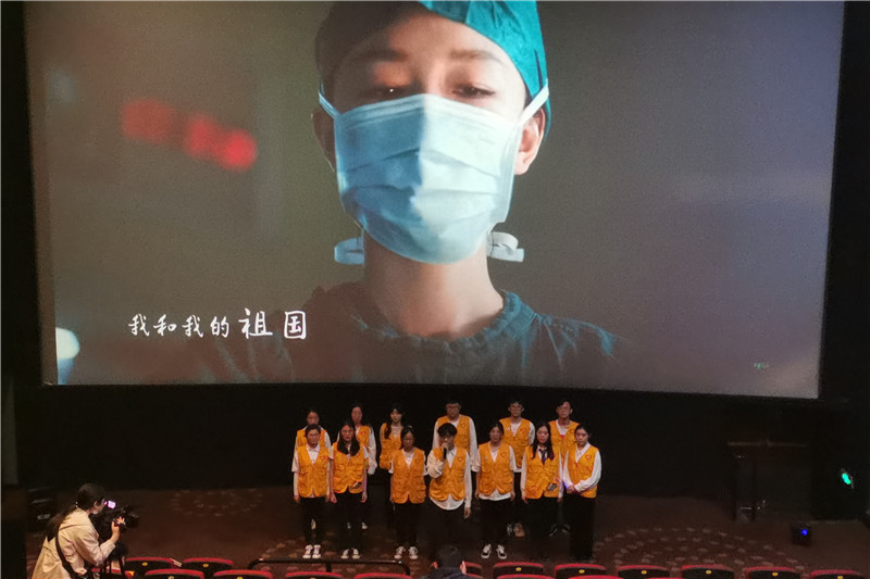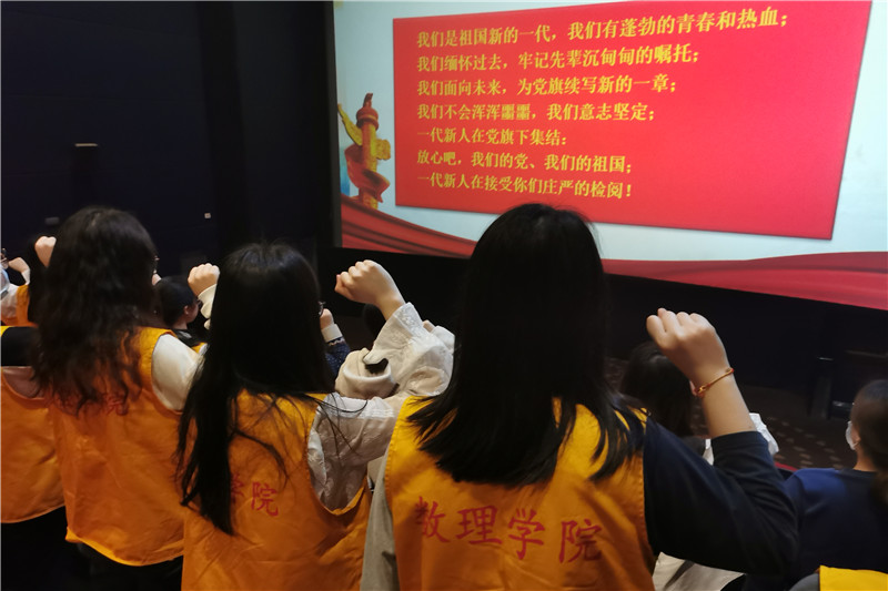 活动中,数理学院青年大学生向社区群众展示了“阳光志愿行”系列活动图片资料,并以朗诵诗歌和歌唱爱国歌曲的形式表达了同学们对祖国的热爱和对党的祝福。随后,同学们和社区群众一起观看了电影《百团大战》,进一步从党的奋斗历程和伟大成就中坚定信念、凝聚力量、砥砺品格。