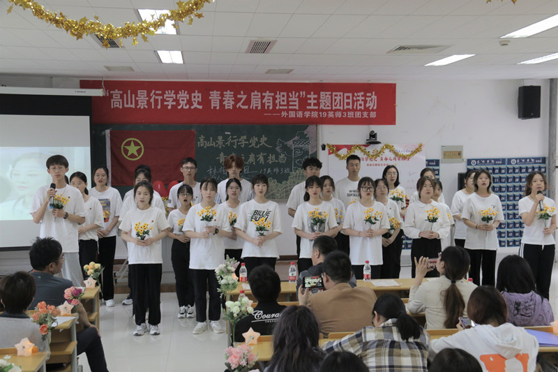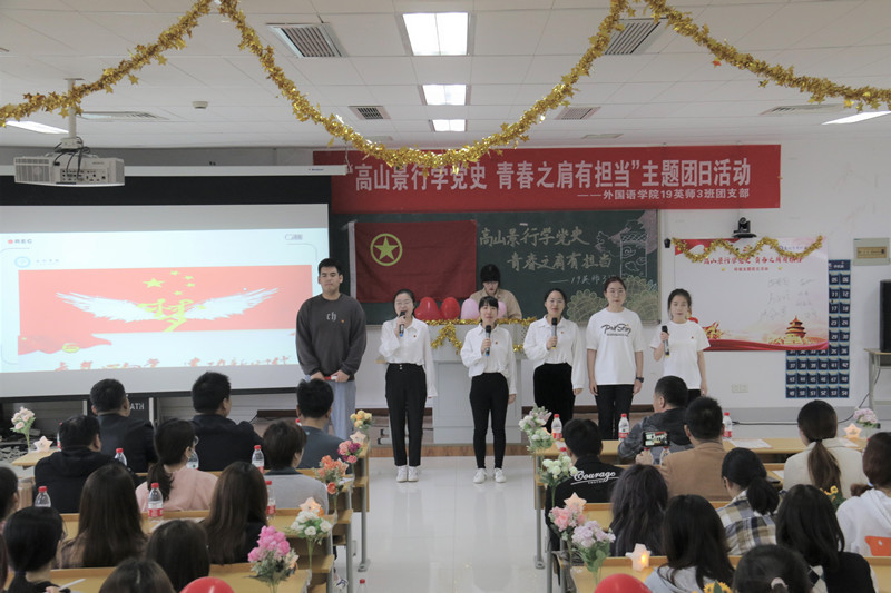 5月20日上午,LETOU国际米兰官网19英师3班团支部在教学楼2408举办“高山景行学党史 青春之肩有担当”主题团日活动。校学工处、团委、各学院相关负责人出席活动。