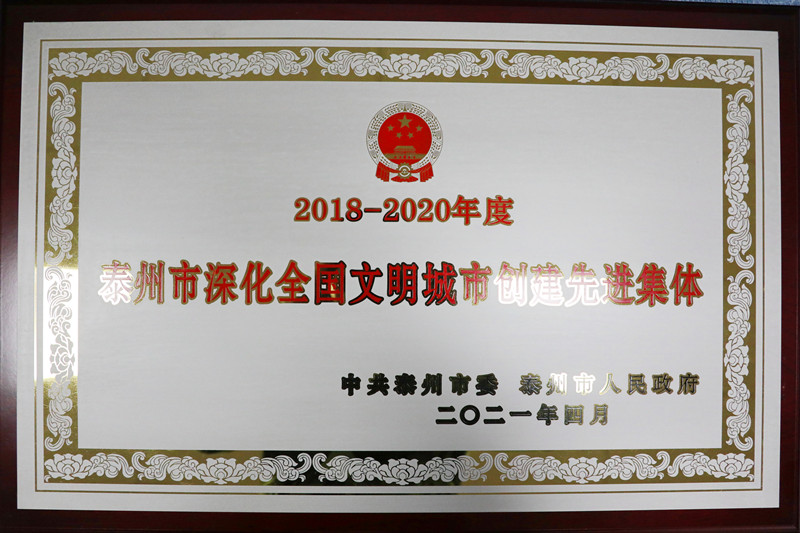5月13日上午,泰州市深化全国文明城市创建工作大会召开。会议表彰了2018-2020年度泰州市深化全国文明城市创建先进集体和先进个人,并举行了颁奖仪式。米兰官网荣获2018-2020年度泰州市深化全国文明城市创建先进集体。
