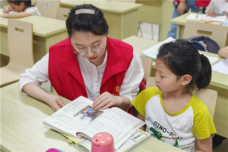 来到社区后,学院教师与社区负责人进行沟通交流,商定志愿服务具体内容及后续安排。随后,学生小老师们的志愿服务正式展开。18汉师2班蒋林凤同学说道:“通过与社区的孩子接触交流,我发现孩子们真的很可爱,这同时也是一个培养自己爱心、不断锻炼自己耐心的过程。”