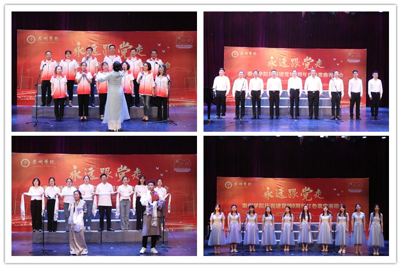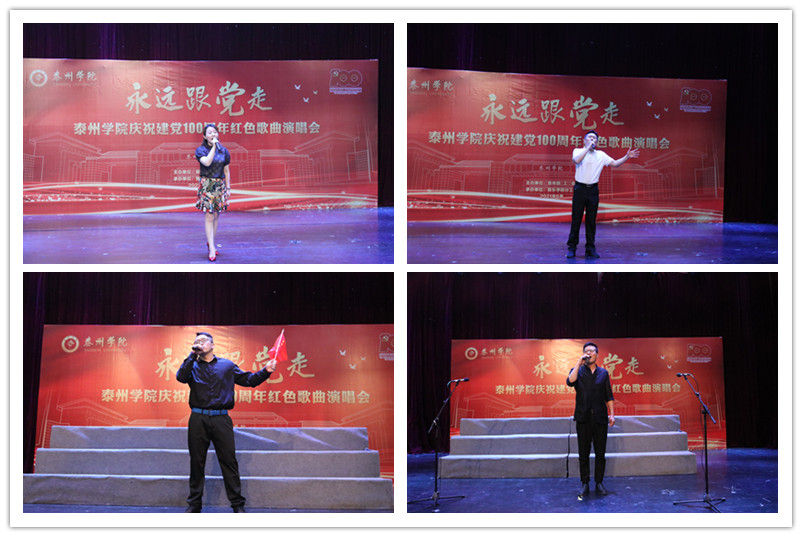 剧场内,歌声飘扬,掌声阵阵。《我们走在大路上》《没有共产党就没有新中国》《映山红》《红旗飘飘》《北京的金山上》《游击队之歌》……一首首耳熟能详的旋律,一句句铿锵有力的歌词,唱出了泰院人心中对党的崇敬与祝福。师生们在动情的歌声中共同追忆往昔峥嵘岁月,共同感悟共产党人追求理想、披荆斩棘的坚强信念和意气风发、斗志昂扬的豪迈气概。(党委宣传部 校工会)