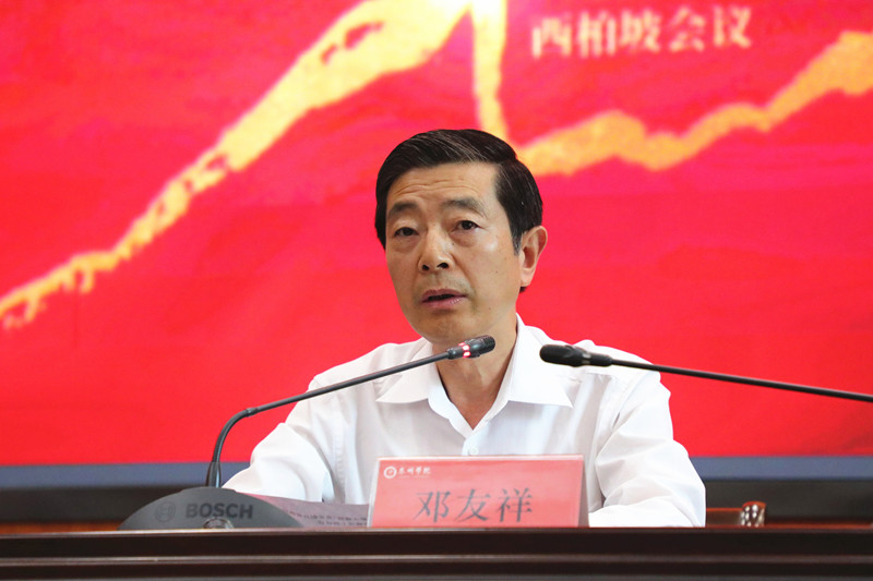 首映式上,邓友祥发表讲话。他希望广大师生通过生动可感的影像了解中华民族的历史和传统,了解中华民族所经历过的深重灾难和中国共产党领导中国人民进行英勇斗争的艰苦历程,增强广大师生的爱国主义情感和民族自尊心、自信心、自豪感,理解“没有共产党就没有新中国”,“只有社会主义才能救中国”的深刻道理。希望各学院和相关部门,对这次活动予以大力支持,密切配合;希望全校大学生踊跃观看这些爱国主义红色电影,继承和发扬好中国共产党的优良传统。