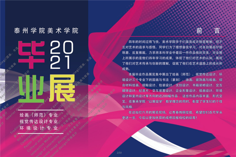 组织一场毕业展。6月15日,“见新见未来,启航新征程”2021届毕业展开幕。毕业展是检验同学们大学四年学习的成果,同学们用画笔记录感动、用模型诠释理解、用镜头捕捉体验、用屏幕演绎时尚,用作品奉献了一场精彩的离别。