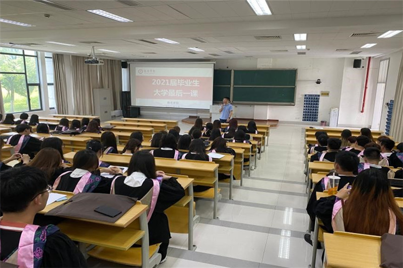 上好大学最后一课。毕业前夕,美术学院党总支书记吴新林走进全体毕业生,他引用孟子的“恻隐之心、羞恶之心、辞让之心和是非之心”勉励每一位毕业生,希望他们毕业后不断地用艺术作品来创造美、分享美、传播美,让青春在祖国需要的地方绽放绚丽之花。