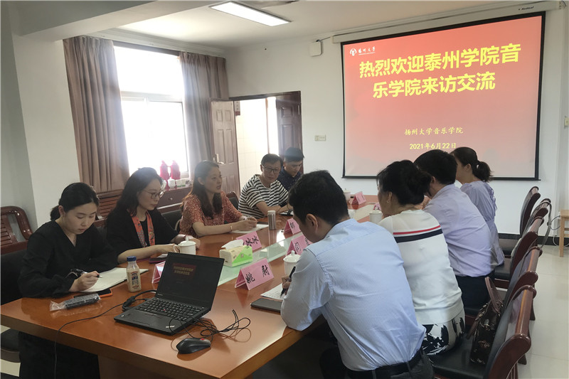 6月22日,音乐学院党总支书记刘江元带领学院教师一行四人到扬州大学音乐学院交流学习。