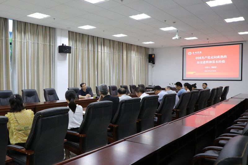 根据校党史学习教育计划安排,6月28日下午,校党委常委、副校长周建超以“中国共产党走向成熟的历史与基本经验”主题,围绕中国共产党成立的历史背景、党从幼年走向成熟的艰难历程以及党不断发展的基本经验等方面,为教务处全体人员上党史学习教育专题党课。