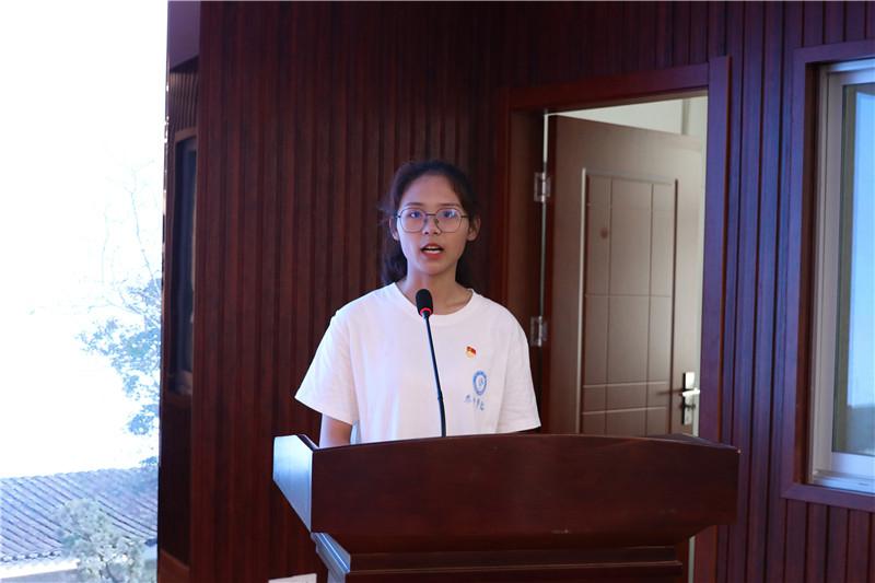 数理学院吴敏同学代表学校新党员发言,她表示,能够在建党百年之际加入中国共产党,并且作为新党员代表在杨根思烈士陵园发言,感到非常激动。她代表新党员表示,要坚定理想信念,做有信仰的党员;要认真学习,做有责任的党员;要勇挑重担,做有担当的党员。