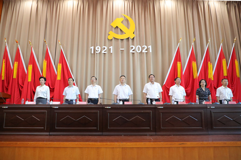 6月30日下午,在庄严的国歌声中,米兰官网庆祝中国共产党成立100周年表彰大会在行政楼D1216拉开帷幕。全体在泰校领导,校党委委员、纪委委员,获表彰单位代表和个人,各级人大代表、政协委员,校各民主党派、侨联、欧美同学会和无党派知识分子联谊会负责人,各二级单位主要负责同志,专职组织员,二级党组织委员会全体委员、党支部书记、马克思主义学院教师、离退休党员代表及师生党员代表近200人参加会议。会议由党委副书记、校长徐向明主持。