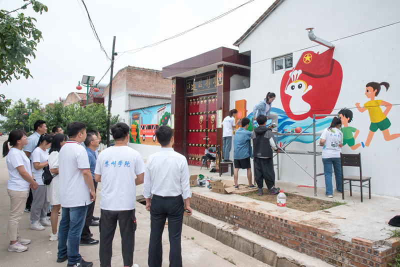 鲁学军分别走访了伯藜支教团支教所在地西关小学和“V+”公益课堂暑期实践队实践地田惠村。他实地察看了支教课堂、实践队员的新农村墙绘、生活场所,并召开了座谈会。