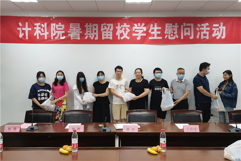 新冠疫情再次袭扰江苏,计算机科学与技术学院的老师们一直密切关注暑期留校学生状况,8月24日,学院开展了暑期留校学生慰问活动,学院关工委副主任王春进、党政领导及辅导员代表,12名学生代表参加活动。