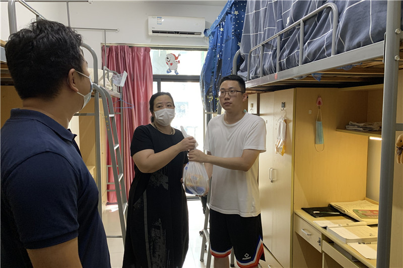 随后,学院领导及辅导员走访留校学生宿舍,为学生们送去水果、面包、牛奶等慰问品,询问了学生的住宿条件和学习状况并对其予以鼓励。