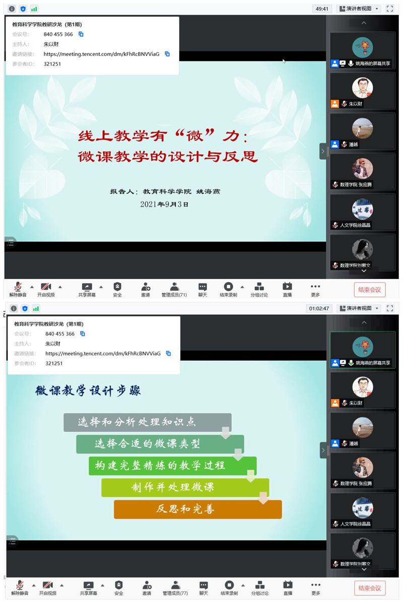 为了发挥线上教学“种子教师”的示范和带动作用,确保开学教学工作秩序平稳有序,根据教务处统一部署,9月3日下午,LETOU国际米兰官网开展“在线教学探索与实践”主题教研沙龙。本期沙龙由获得2020年江苏省高校微课教学比赛二等奖的两位青年教师主讲,全校近80名教师共聚“云端”,同话教研。