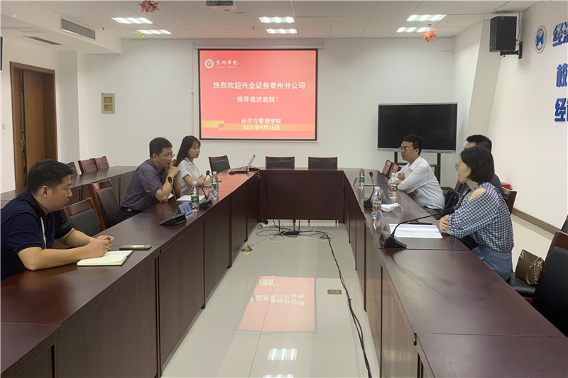 9月16日上午,兴业证券泰州分公司总经理张杰石一行来米兰官网经济与管理学院,就校企双方合作共建、企业人才招录、参与人才培养等方面进行交流。