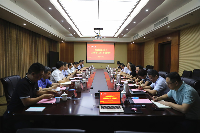 9月23日下午,常州大学党委常委、纪委书记邱正祥一行到校调研交流。校党委书记赵茂程出席会议并致辞,校党委常委、纪委书记吴菁主持交流座谈会,办公室、组织部、机关党委、纪委办、人事处、审计处、保卫处、工会等相关部门负责人参加座谈会。
