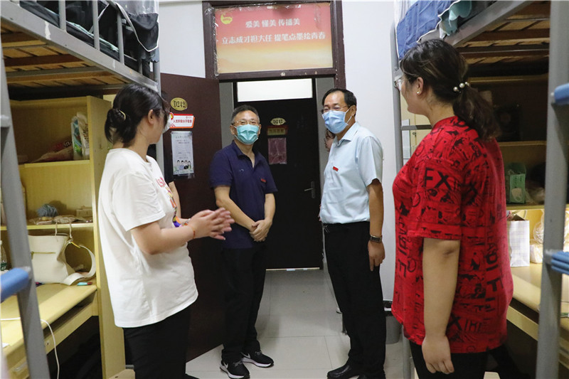 校领导一行走访了北门迎新区、图书馆广场新生分流区、图书馆二楼现场报到区、核酸检测区、考研复习教室、新生宿舍,详细了解新生入校流程和核酸检测情况,详细询问了新生报到率以及相关数据,并对今后进一步做好校院两级招生和迎新工作提出了建议和要求。