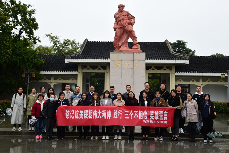 10月20日,马克思主义学院全体教师冒雨前往泰兴市根思乡杨根思烈士陵园开展主题党日活动,“青年马克思主义者研究会”和“军事爱好者协会”的社团骨干一起参加活动。