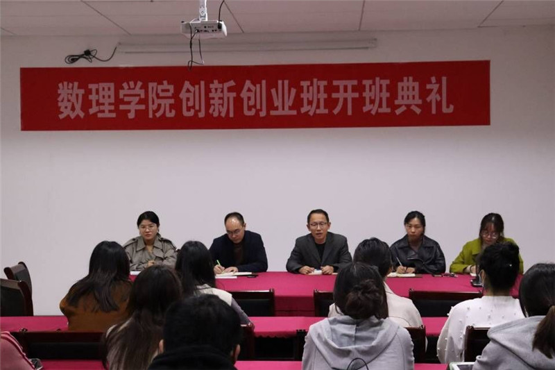 10月21日,数理学院首届创新创业实验班举行开班仪式。数理学院副院长王成敏,党总支副书记、副院长吴小荣及辅导员老师和实验班学员参加开班典礼。