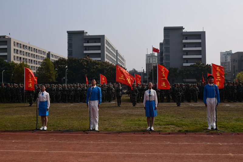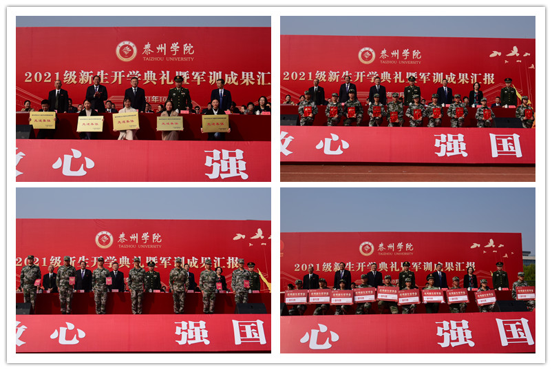 廖鹏发布军训汇报实施命令;邓友祥宣读《关于表彰2021级学生军训先进集体和先进个人的决定》;王美林宣读《关于表彰2021年“优秀新生奖学金”获奖学生的决定》;校领导为新生代表佩戴校徽。人文学院胡璇同学作为2021级新生代表、船舶与机电工程学院孟硕同学作为老生代表、医药与化学化工学院芮海云教授作为教师代表分别作了发言。