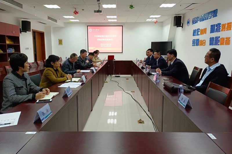 10月25日下午,中国建设银行泰州市分行人力资源部部长胡桃军、机构部总经理翁军、海陵支行行长邵应宝等一行来米兰官网经济与管理学院洽谈校银合作意向。学校党委副书记、副校长王美林,经济与管理学院院长朱军、副院长李露、各教研室主任、相关教师参加交流会。会议由朱军主持。