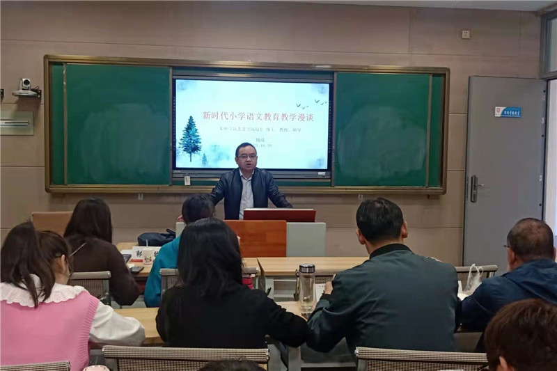 10月30日,人文学院钱成教授应邀为盐城师范学院承办的教育部“国培班”做学术讲座,并与参培对象青海省的21名小学语文特级教师、省级骨干教师进行了深入交流。