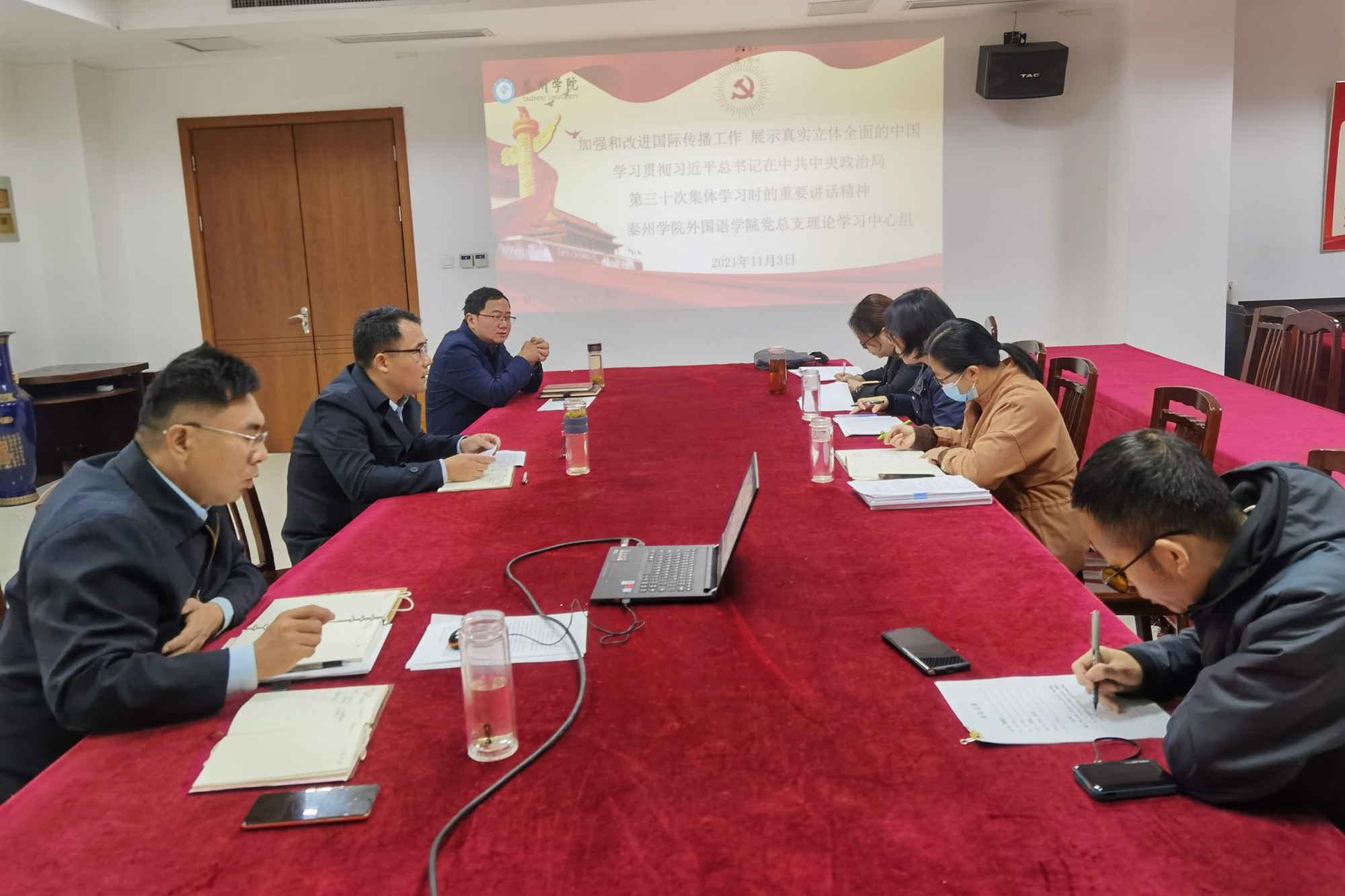 11月3日上午,LETOU国际米兰官网党总支理论学习中心组在D1326召开专题学习会,学习贯彻中共中央总书记习近平在中央政治局第三十次集中学习时的重要讲话精神。会议由LETOU国际米兰官网党总支书记陈茂国主持,学院全体理论学习中心组成员参加,并作交流发言。