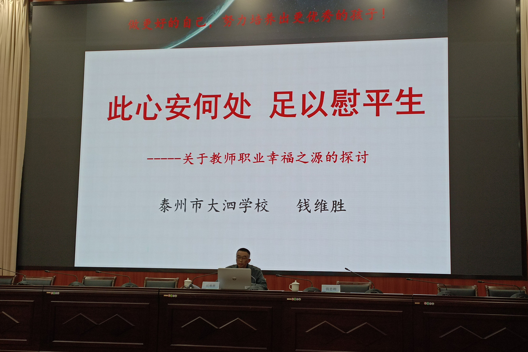 报告会上,钱维胜从理想和追求、责任和担当、求真和务实、情怀和仁爱、团结和合作等五个方面,结合自己在西藏五年的援教经历,和大家探讨了关于教师职业幸福之源从哪里来等问题,并阐述了作为教师只有努力做更好的自己,才能培养出更好的学生的观点。