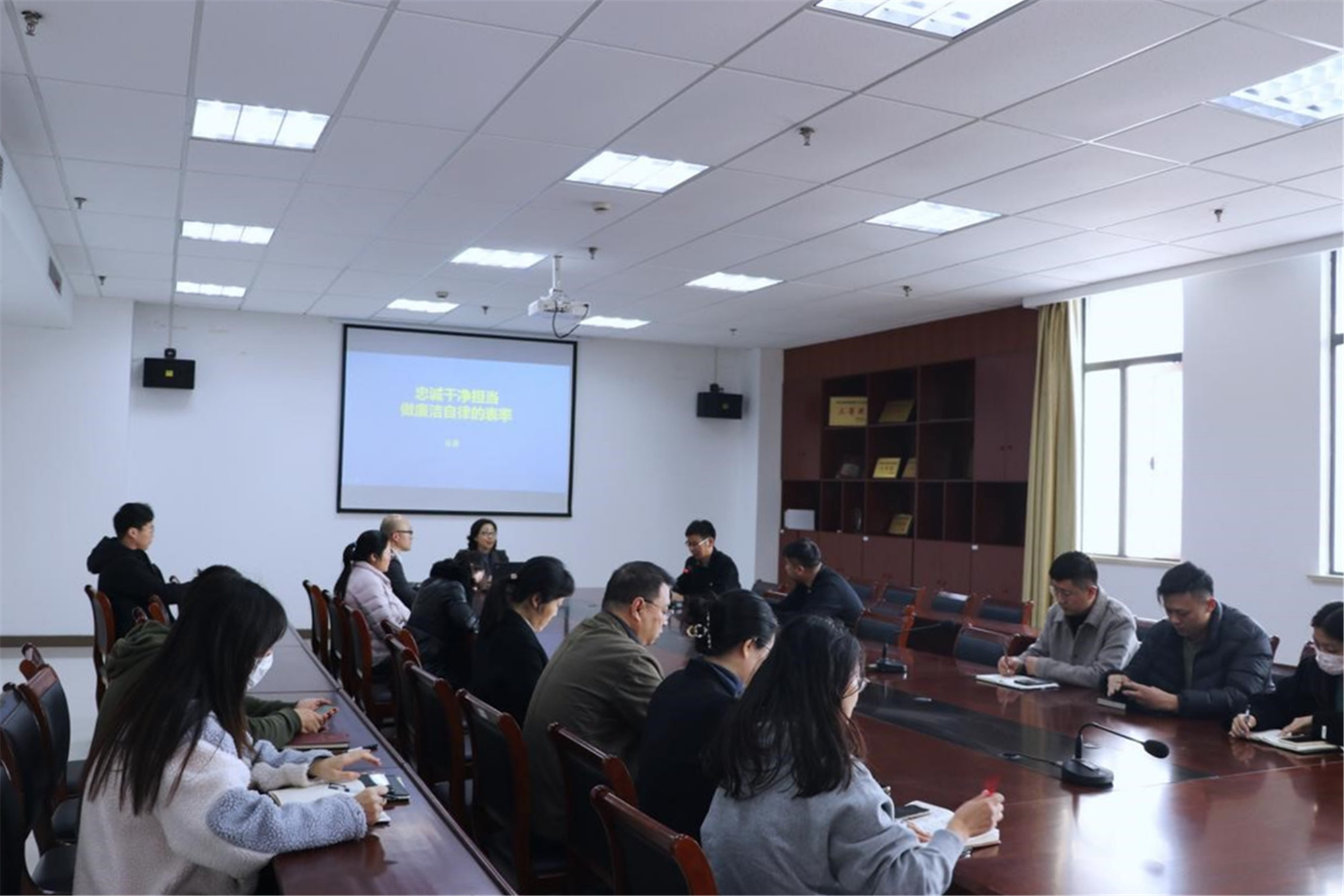 11月18日下午,校党委常委、纪委书记吴菁在美术学院会议室C1602,以《忠诚干净担当做廉洁自律的表率》为题,为学院党员教师开设专题党课。