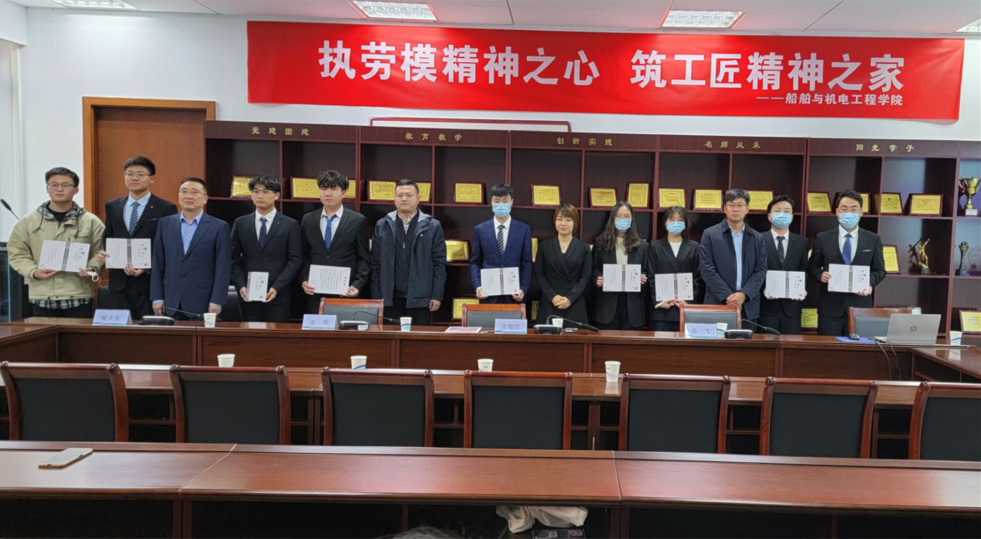 四位劳动模范期望同学们,以时代楷模为榜样,以蓬勃向上的朝气、攻坚克难的勇气、勇往直前的豪气、苦干实干的志气,砥志研思,不负时代,不负韶华,书写无愧于时代的青春华章。(船舶与机电工程学院)、