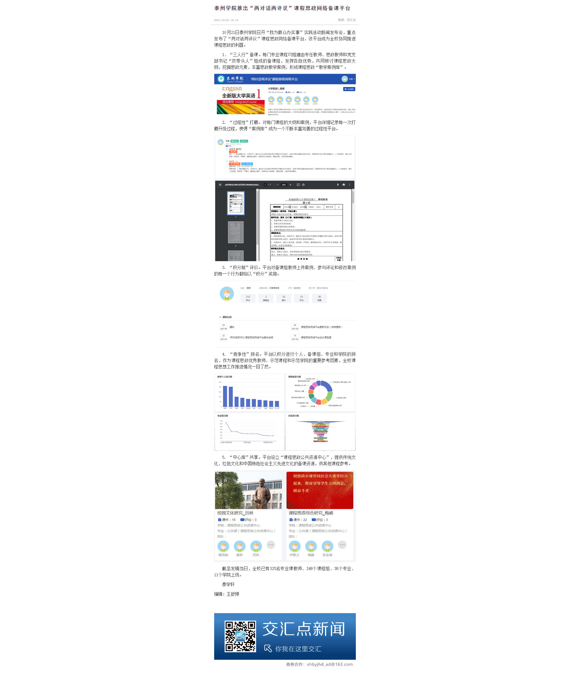 10月22日,《交汇点新闻》报道米兰官网推出的“两对话两评议”课程思政网络备课平台。