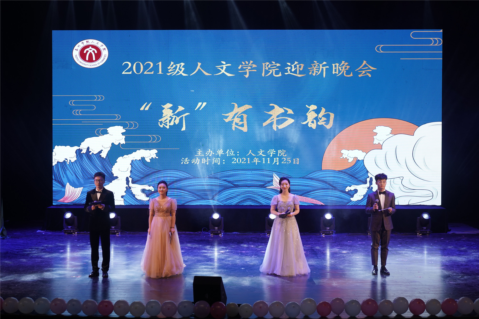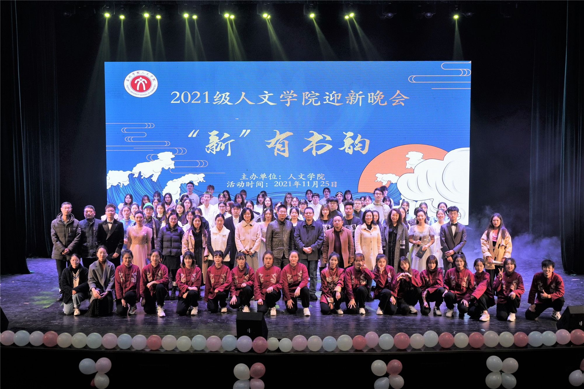 11月25日晚,人文学院在大学生活动中心举办“‘新’有书韵,爱在人文”2021级新生迎新晚会。校学工处领导、人文学院党政负责人、全体师生参加本次活动。