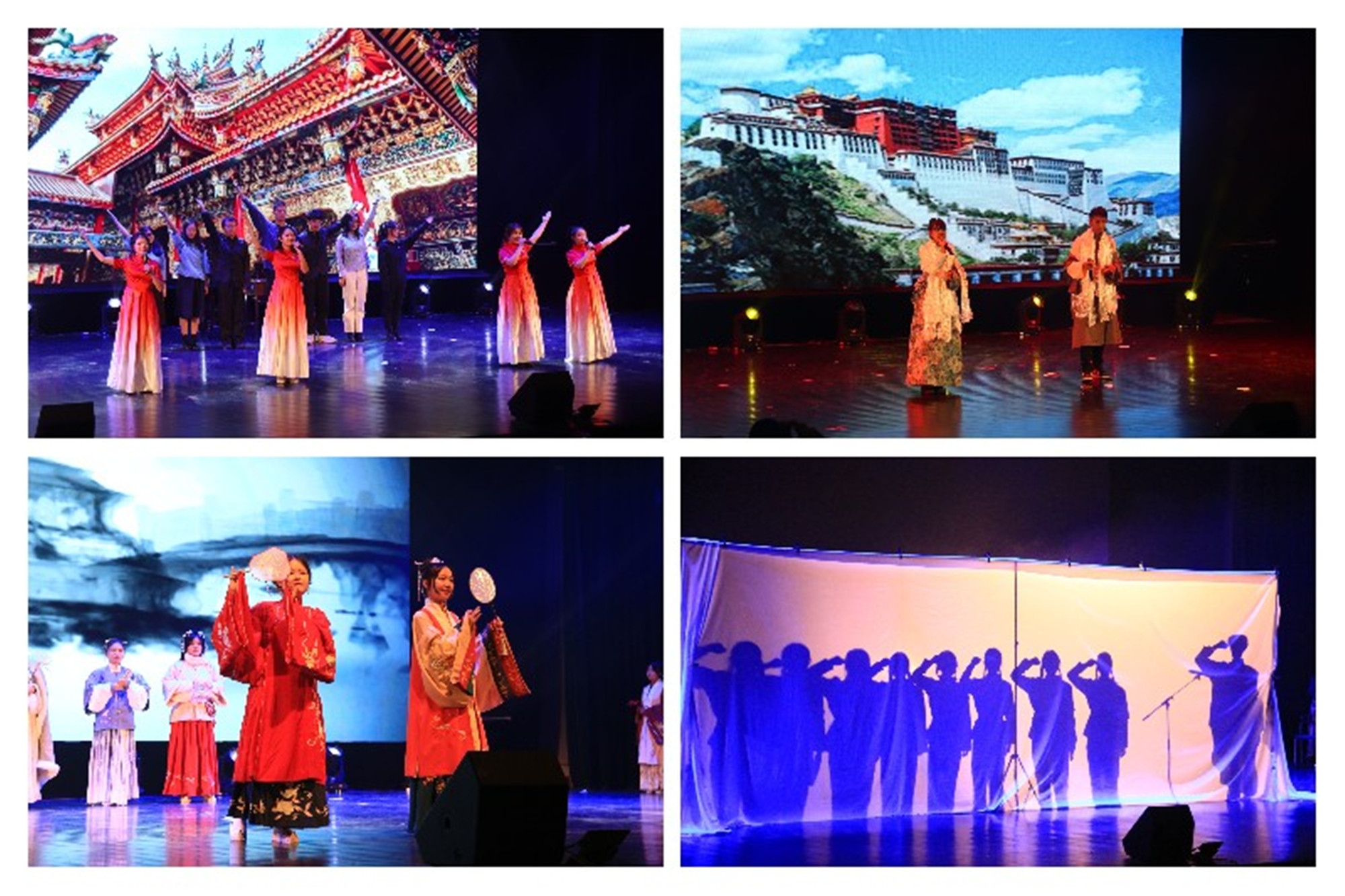 晚会分为“百年征程风华正茂”“青春榜样前行力量”“多彩校园活力外院”“多元文化百团绽放”四个章节。朗诵、汉服秀、英文话剧、中英歌曲串烧等节目展现了外院学子的专业水准和才艺水平,各具特色,精彩纷呈。在场领导、中外教师共同参加大合唱《稻香》,抒发了对青春的礼赞,给观众们带来了一场视听盛宴。